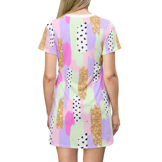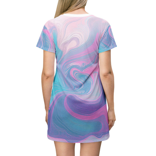 Whimsical Watercolor T-Shirt Dress - Trendy Pastel Swirl Design for Summer Days