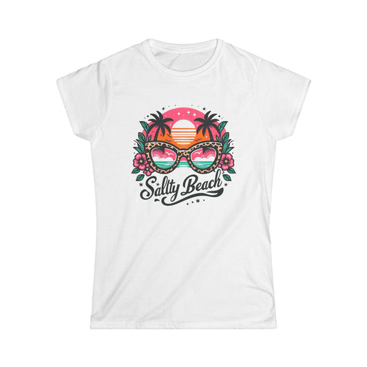 Salty Beach Women's Softstyle Tee | Summer Vibes T-Shirt, Tropical Apparel, Beachwear, Gift for Vacation Lovers, Fun Graphic Tee