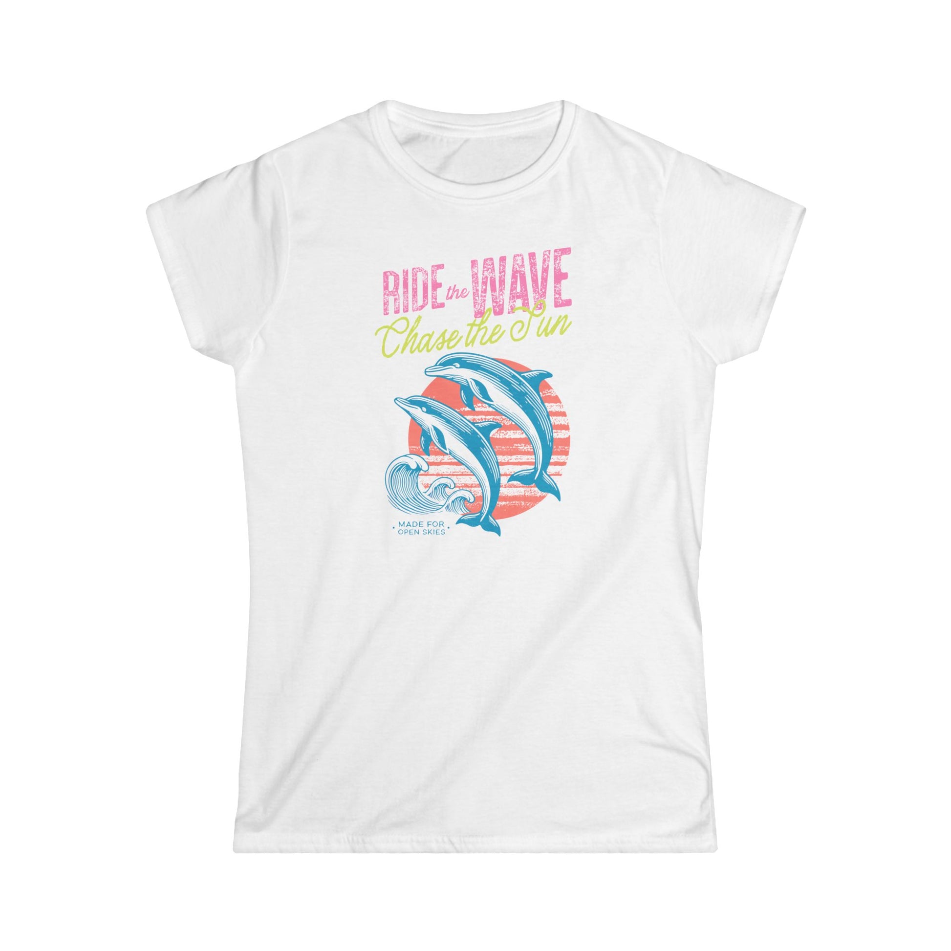 Embrace your love for the ocean with this vibrant Women's Softstyle Tee. Featuring a cheerful graphic of playful dolphins, this tee is perfect for those who enjoy beach days and seaside adventures. Its light fabric makes it ideal for warm weather, ensuring you stay cool and comfortable while enjoying the sun. Whether you're headed to a summer festival or just relaxing at home, this piece adds a splash of fun to your wardrobe. Designed for adults, it’s a fantastic gift for beach lovers, making it suitable for occasions like beach vacations, birthdays, or just a casual day out in the sun.