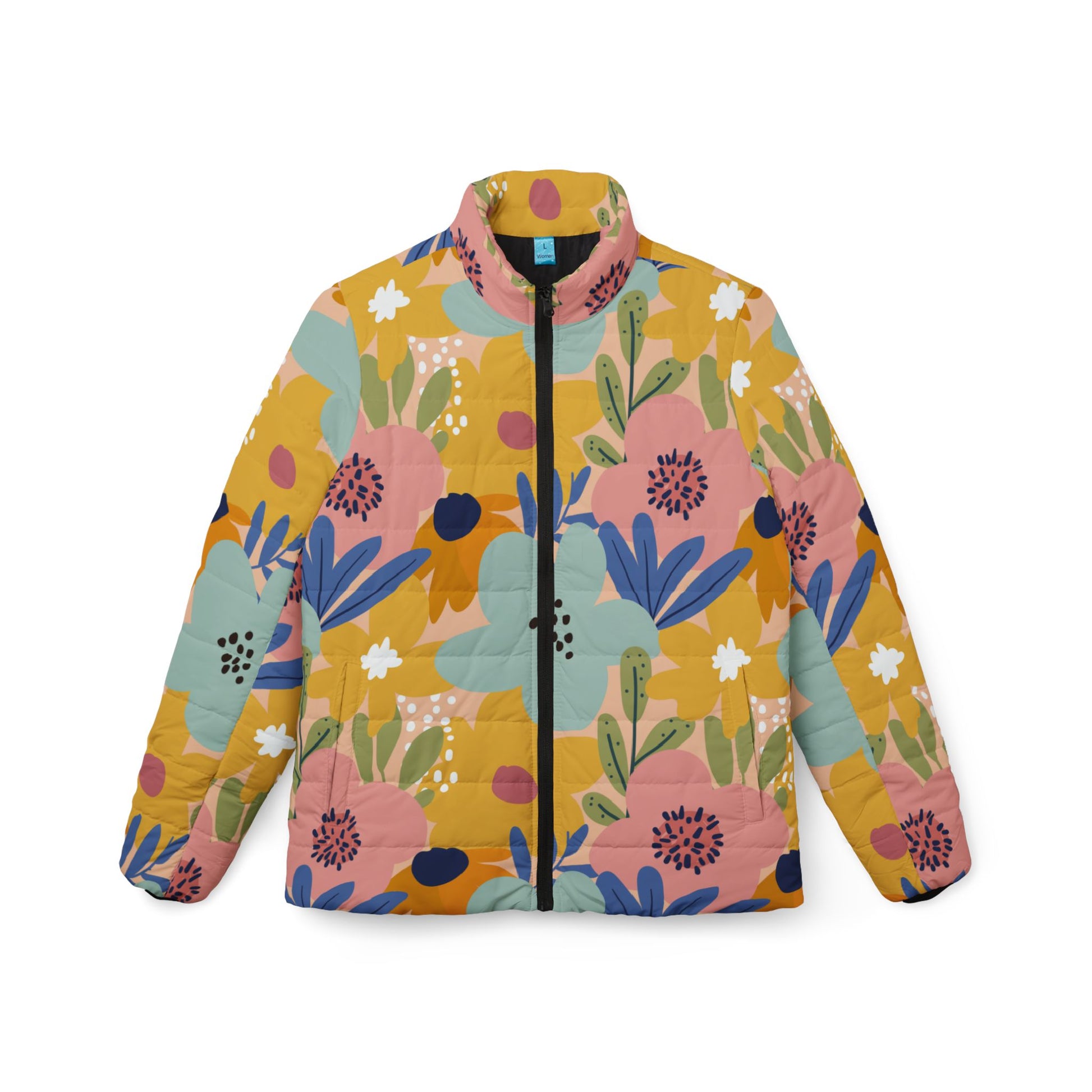 Floral Pattern Women’s Puffer Jacket – Colorful Spring Garden Print